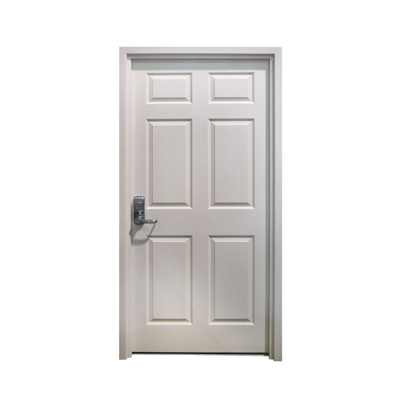 This three-foot Vanguard Door has a right-hand in-swing and a six-panel design. It’s built tough with a door frame constructed of 12-gauge steel, six chrome locking bolts, and a UL® Listed Electronic Lock. The Vanguard Storm and Security door offers a more affordable and discreet solution for protecting an entire room.