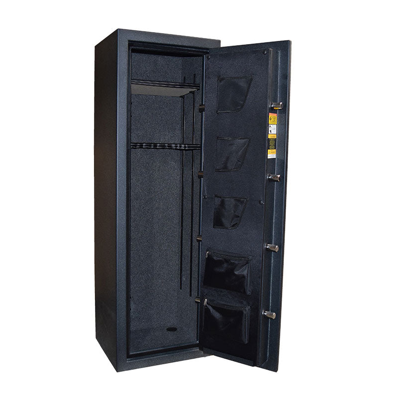Featuring 14-Gauge steel, 8-1" chrome plated locks, and 30 minutes of 1,200° fire resistance, TheftGard is our most cost-efficient safe. Boasting a UL-listed electronic lock and a drop-down handle for ease of access, your firearms are secured with the reliable ProSteel name, allowing you to enjoy the tranquility of mind while you are away.